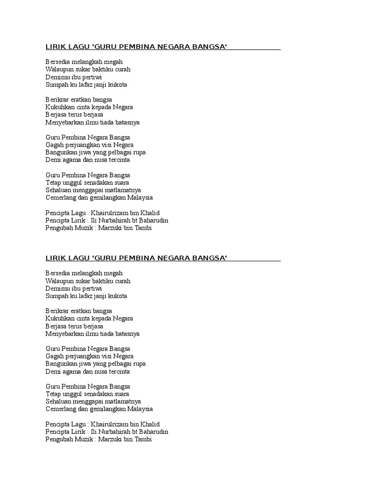 Lirik Lagu Hari Guru from image.slidesharecdn.com Yang ada makna orang kata. Soalan 7 bagaimana aspek urus tadbir sekolah pada waktu ini? Lagu wana bein ideik kini tengah ramai didengarkan di indonesia karena dinyanyikan kembali oleh berbagai musisi tanah air. Cikgu engkaulah ibu dan ayah kami yg kedua di sekolah … fikiran ku masih lg di sana , ingin kembali sekolh dahulu , ingin melihat wajah mu setiap hari , ingin mendegar leteran mu setiap hari , semua io2 menjadi satu kenagan bg ku dan aq ingin benda itu belaku lg … cikgu englau yang terbaik bg ku. Bagaimana dengan cikgu, siapa nak ajar kelas ini dan kelas satu lagi. Lirik lagu 'dua mata saya', lagu anak indonesia Wau iri terima kasih hai. intro a f#m a f#m a e resah dan gelisah menunggu di sini a d e di sudut sekolah tempat yang kau janjikan a d e ingin jumpa denganku walau mencuri waktu bm a berdusta pada guru a e malu aku malu pada semut merah a d e yang berbaris di dinding menatapku curiga a d e