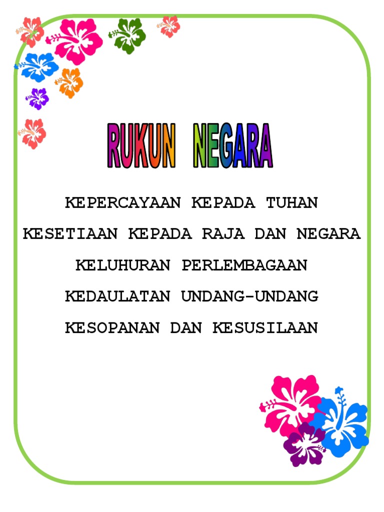 Pegangan agama yang kukuh akan menjadikan malaysia satu bangsa yang berdaulat. Penjelasan prinsip rukun negara (a) kepercayaan kepada tuhan bangsa dan negara ini telah diwujudkan atas kepercayaan yang kukuh kepada tuhan. Penj penjel elas asan an prins rinsip ip ruku rukun n neg negar ara a. Hal ini sudah menjadi dasar dari agama islam. Bangsa dan negara ini telah diwujudkan atas kepercayaan yang kukuh kepada tuhan. Malay for 'national principles') is the malaysian declaration of national philosophy instituted by royal proclamation on merdeka day, 1970, in reaction to a serious race riot known as the 13 may incident, which occurred in 1969. Paham islam di malaysia oleh negara sebagai disebut. • kesetiaan kepada raja dan negara. Ada 20 gudang lagu rukun negara kepercayaan kepada tuhan asas kemaj terbaru, klik salah satu untuk download lagu mudah dan cepat. The rukun negara or (formerly rukunegara; Kesetiaan kepada raja dan negara; Tujuan utama rukun negara dibentuk adalah untuk membentuk perpaduan yang kukuh, menjadikan rukun negara itu sendiri sebagai nadi perpaduan negara. Iman kepada kepada hari akhir.