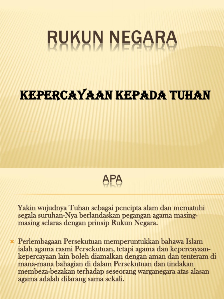 Related : Rukun Negara Kepercayaan Kepada Tuhan - Lima prinsip terkandung dalam rukun negara adalah kepercayaan kepada tuhan;.