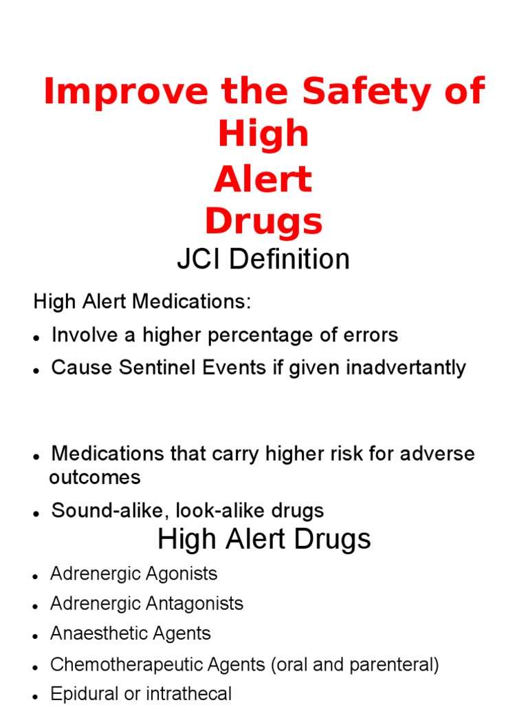 Related : High Alert Medication List / High Alert Medication : Medicines are generally safe when used as prescribed or as directed on the label, but there are risks in taking any medicine..