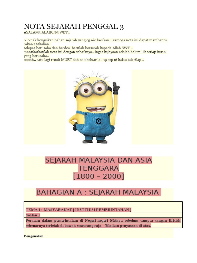 Semoga nota sejarah ini boleh dijadikan bahan untuk membuat ulangkaji menjelang peperiksaan spm dan juga mencari idea dalam menjawab sejarah kertas 3. Nota sejarah tingkatan 4 cikgu sarapa ismail @ mrsm pengkalan. Berikan 3 langkah ( strategi ) untuk menjadi negara maju ? Koleksi nota terbaik nota sejarah stpm untuk semester 1 semester 2 dan semester 3 bahan sejarah sijil tinggi pelajaran malaysia. 。 penggal 1, 2, 3 :